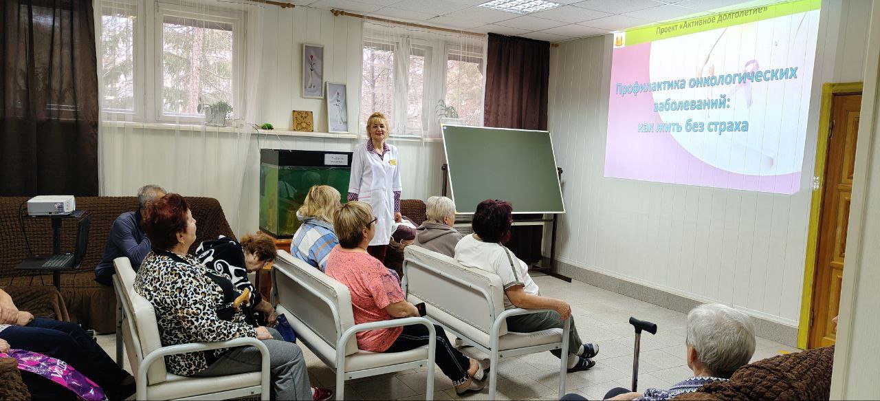 В рамках социально-медицинского консультирования заведующий отделением социально-медицинской реабилитации С.В. Пальникова провела презентацию на тему: «Профилактика онкологических заболеваний».