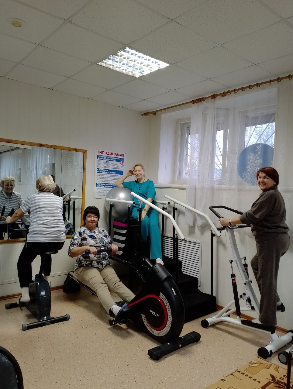 В стационарном отделении РЦ «Доблесть» среди сотрудников учреждения проходят занятия по производственной гимнастике. Под руководством инструктора ЛФК Калиновской Н.А. сотрудники выполняют комплекс оздоровительных упражнений. Польза от таких занятий — не только профилактика развития производственных заболеваний и повышение работоспособности, но и заряд позитивными эмоциями, отличным настроением, и формирование здорового психологического климата. В здоровом теле — здоровый дух!