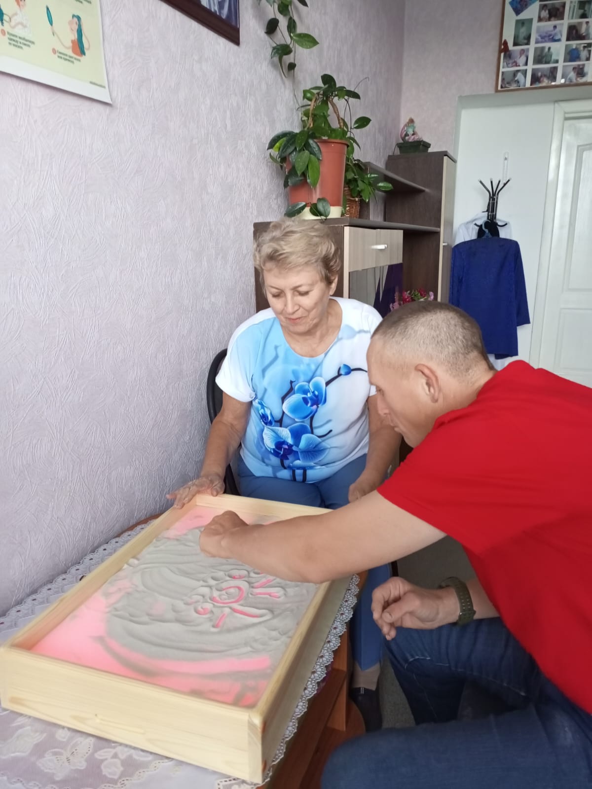 В стационарном отделении РЦ «Доблесть» психологом были проведены индивидуальные занятия с использованием песочного светового стола. Песочная терапия позволяет одновременно реализовывать два направления: восстанавливать, компенсировать и корректировать глазодвигательные, зрительные и психические функции. Основная цель песочной терапии — достижение эффекта самоисцеления посредством спонтанного творческого выражения. Игра в песок высвобождает заблокированную энергию и “активизирует возможности самоисцеления, заложенные в человеческой психике”, — считал Карл Густав Юнг, основатель аналитической психотерапии. Подобные способы самовыражения позволяют активизировать скрытые ресурсы человека, кроме того, любые виды творчества сами являются мощнейшим ресурсом.