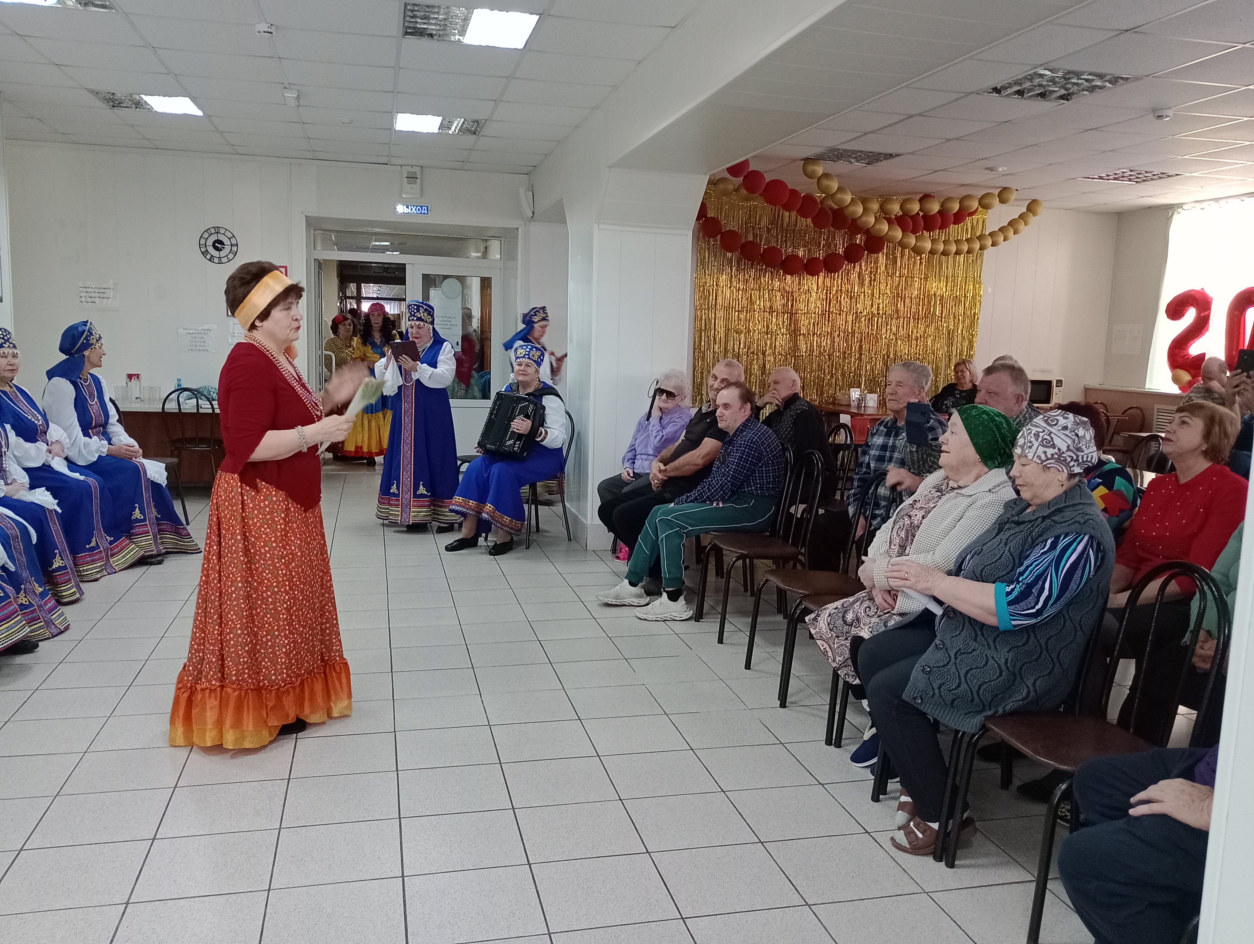 Вокальный коллектив «Золотая пора» под руководством музыкального руководителя Голудиной Т.С. порадовали зрителей исполнением колядных песен, частушек, гаданий, хороводов.