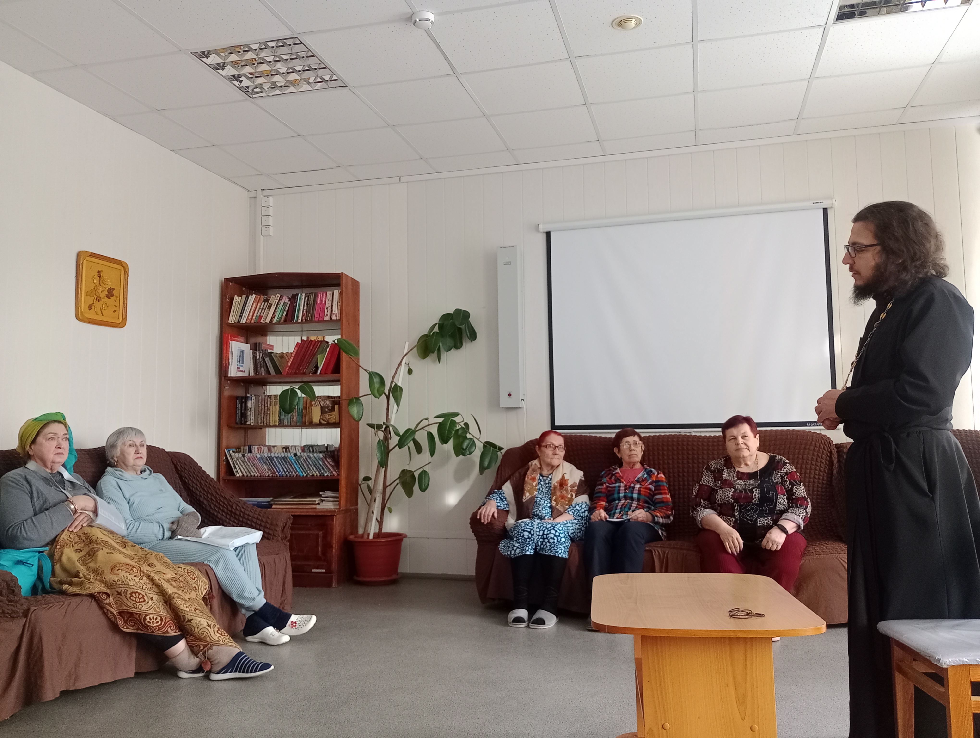 Ответил на вопросы получателей социальных услуг. В заключении встречи, батюшка благословил присутствующих.