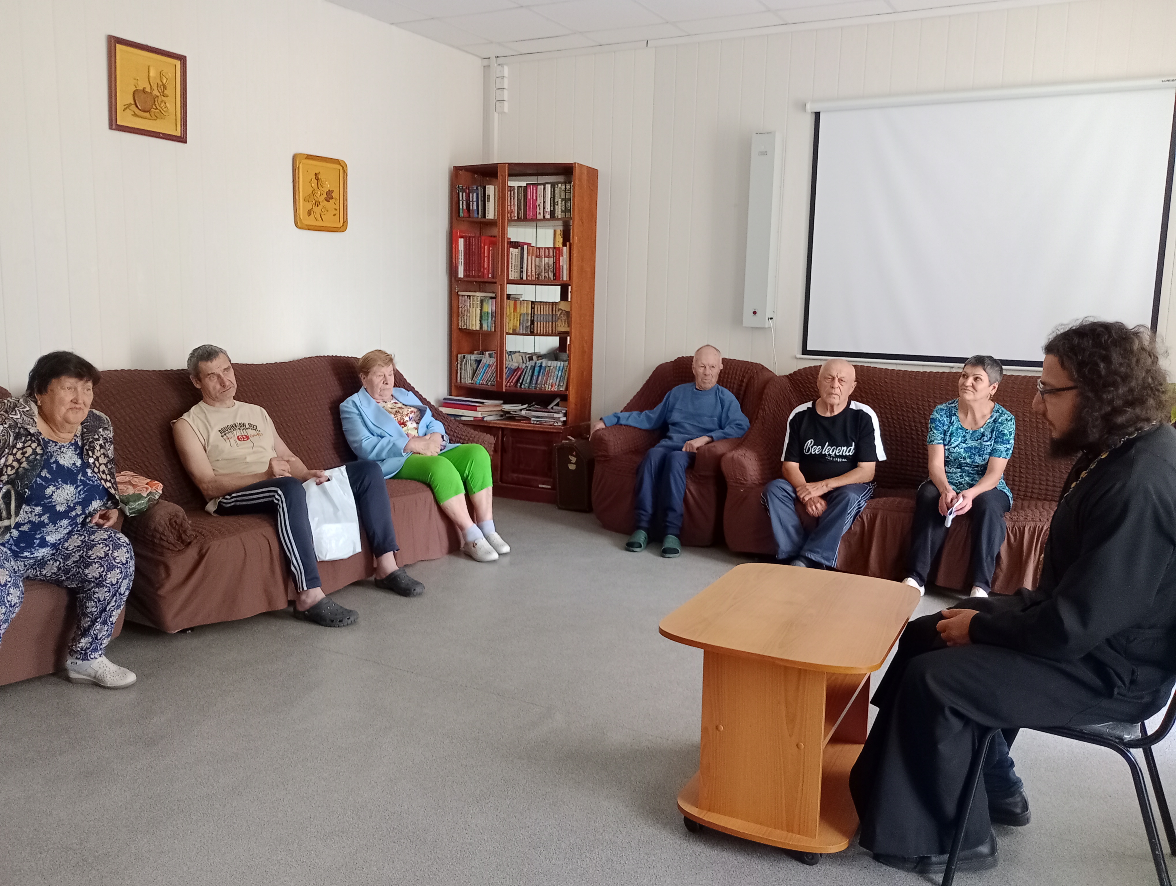 14 августа в стационарном отделении РЦ «Доблесть» состоялась встреча с иереем храма в честь иконы Божьей Матери А. Самсоновым